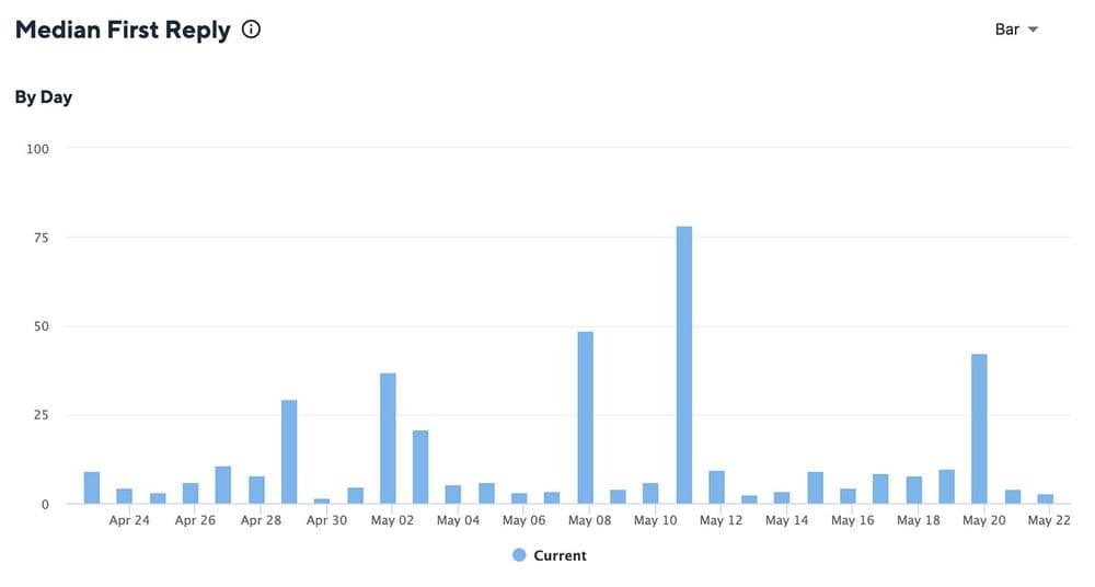 初回回答時間は、お客様が回答を得るまでに待たされた時間を示すことで、サポートチームの効率を測定します。