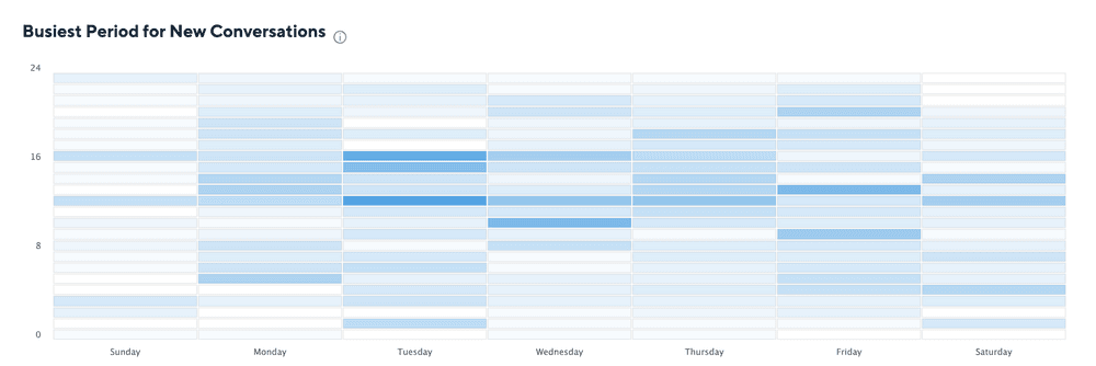1時間あたりの顧客からのサポートの需要は、1日のさまざまな時間帯におけるサポートの需要を表します。このメトリクスでは、急上昇した日や週、月のカスタマーサポートチケットを監視・分析することができます。