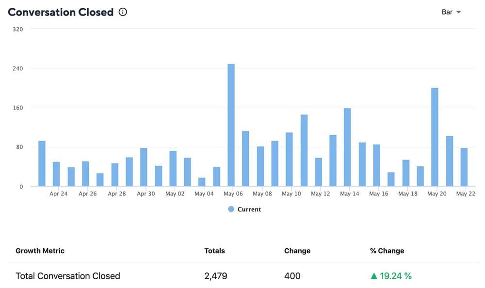 コンバージョンチケットの統計を分析することで、サポートチームが顧客の購買プロセスを支援することで生み出している金額を把握することができます。