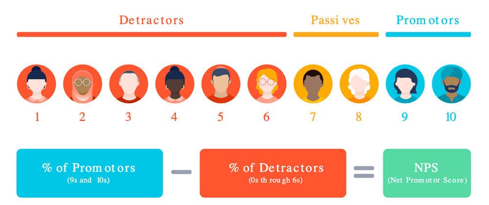 推進派(プロモーター)は、9から10の間であなたを評価する忠実な顧客ベースです。パッシブは、満足しているが、改善できると感じている顧客で、7~8を提供してくれます。