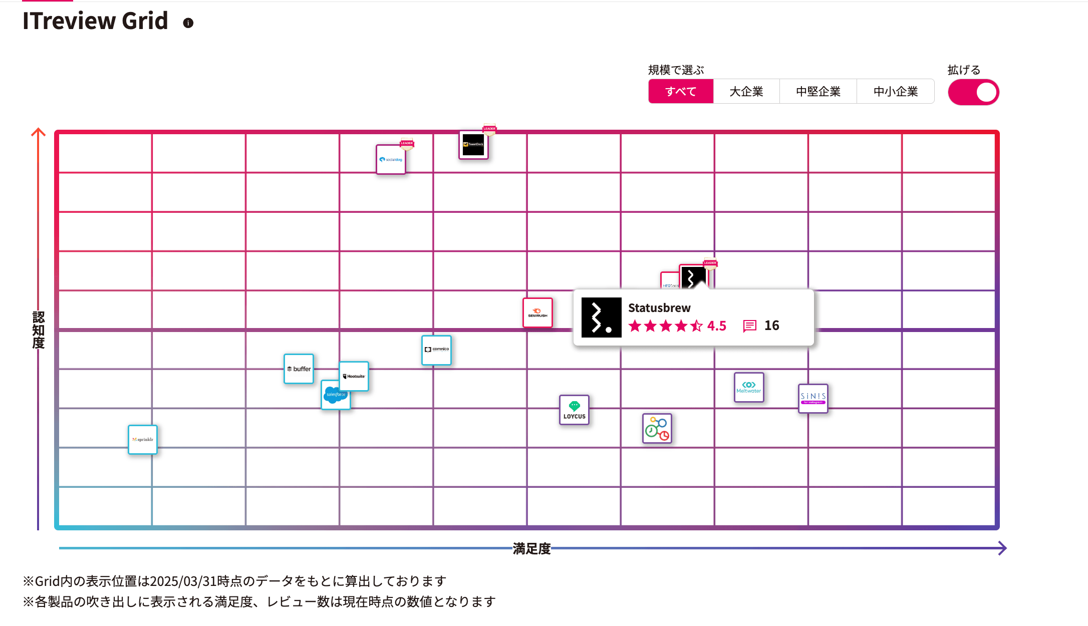 (↑ Statusbrewは業界のリーダーの立ち位置を維持しています)