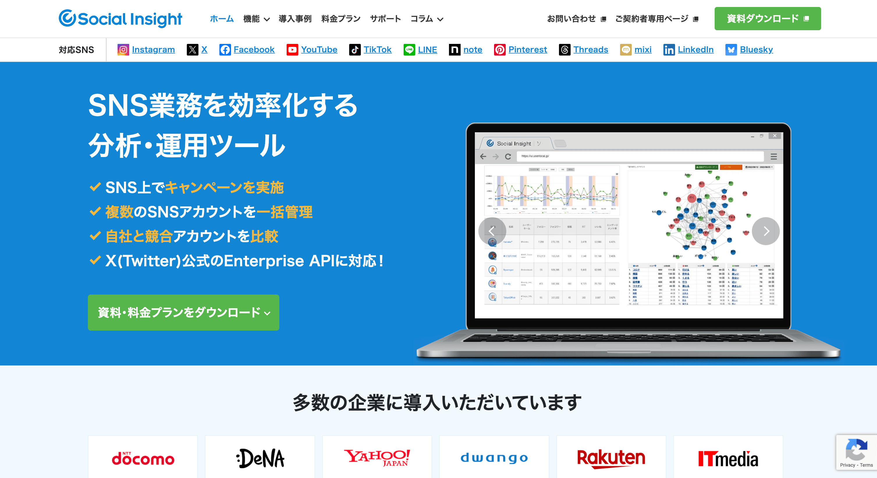 ソーシャルインサイト(Social Insight)は、日本市場がソーシャルに求める要素を十分に理解した、日本で最も大規模なソーシャルメディアリスニングツールと呼んでも過言ではありません。Social Insightは東京に本社を置く株式会社ユーザーローカルが運営するソフトウェアの一つです。