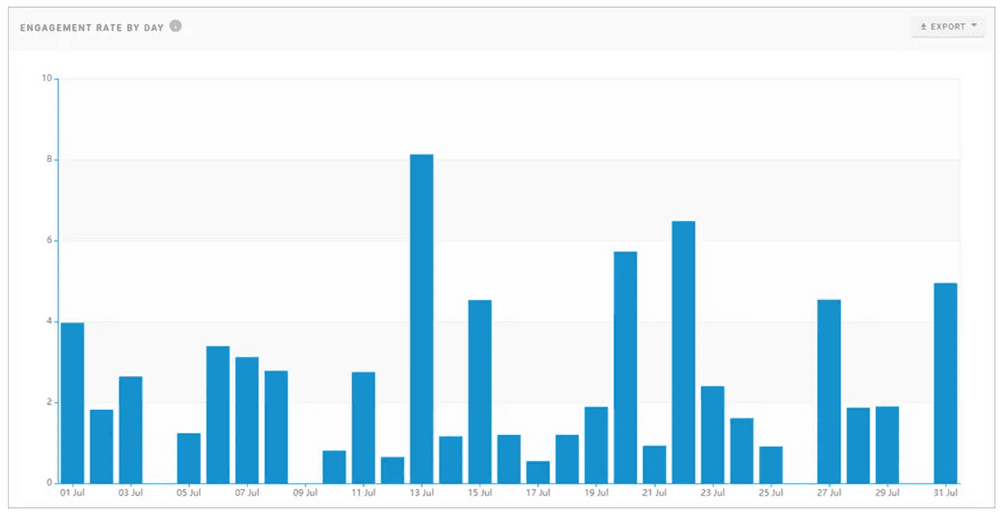 さらに、ソーシャルメディアマーケティングツールによっては下記のようにエンゲージメント率を算出してレポート化することもできますが、Statusbrewでは「マーケターによってエンゲージメントの算出」は百通りのため、あえて機能として搭載していません。