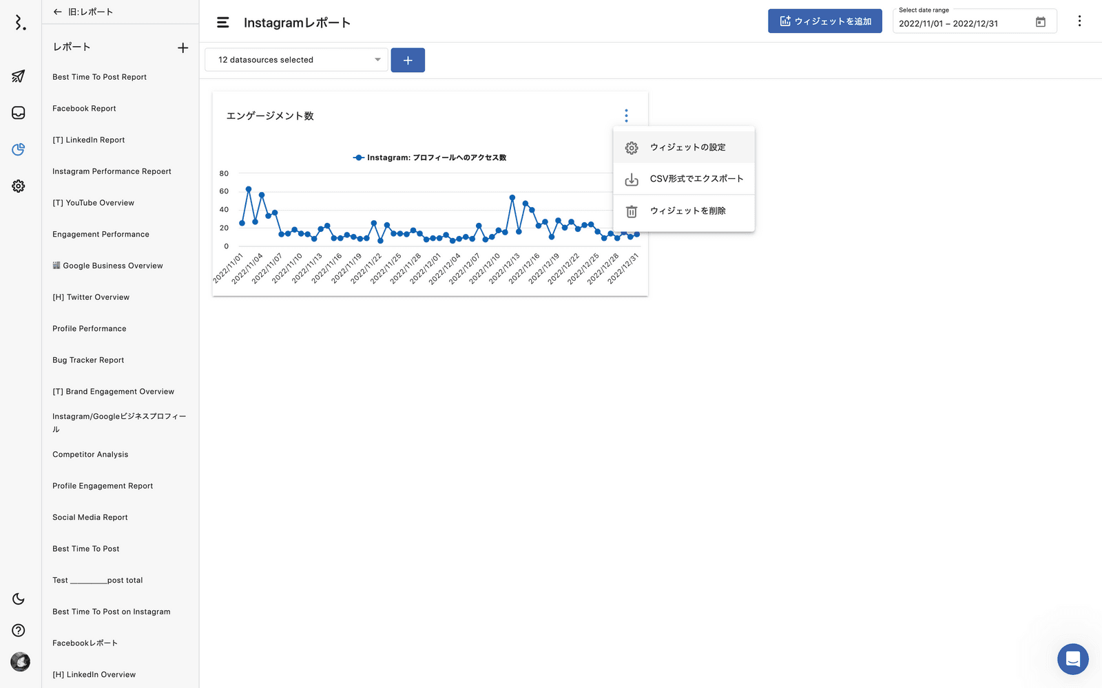 ②レポートに掲示するソーシャルメディアアカウント(データソース)を選択する