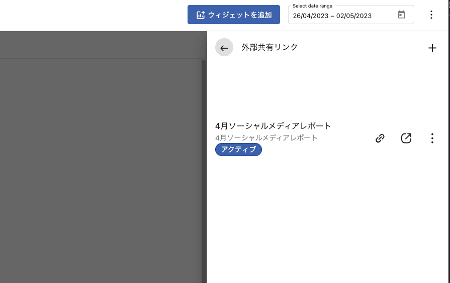 データを作成したら保存することで、ダッシュボードにデータが埋まり、このような完成形としてクライアントにリンク共有します。またレポートはデータ取得期間とともに予約してしまうことでクライアントにデータ共有を忘れることもありません。