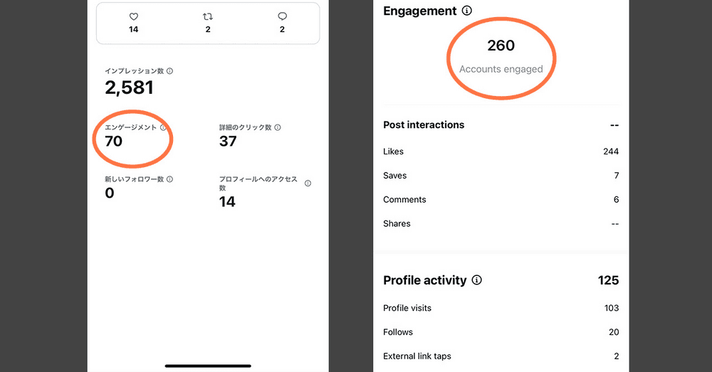 (←Twitter投稿のエンゲージメント Instagram投稿のエンゲージメント→)