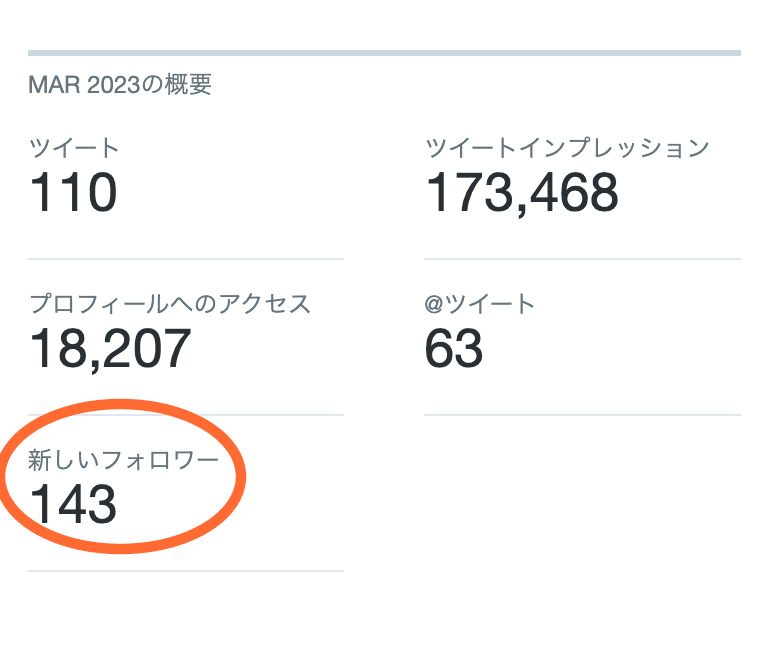 月間フォロワー増加数の例(Twitter Analytics機能)