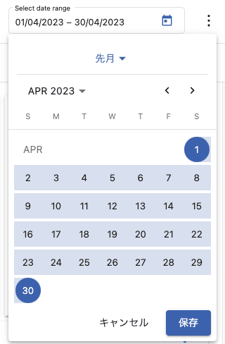 ソーシャルメディアのアカウント全体の分析は、前月比で出すことが一般的なのでここでは1ヶ月を選択します。