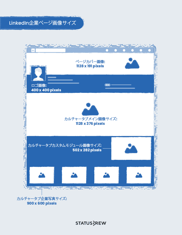 LinkedIn企業ページカバー画像: 1128 x 376 pixels
