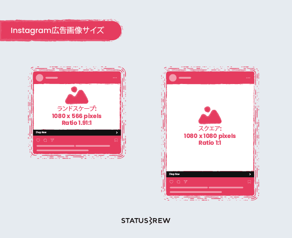 Instagramフィード広告[スクエア]: 1080 x 1080pixels アスペクト比1:1