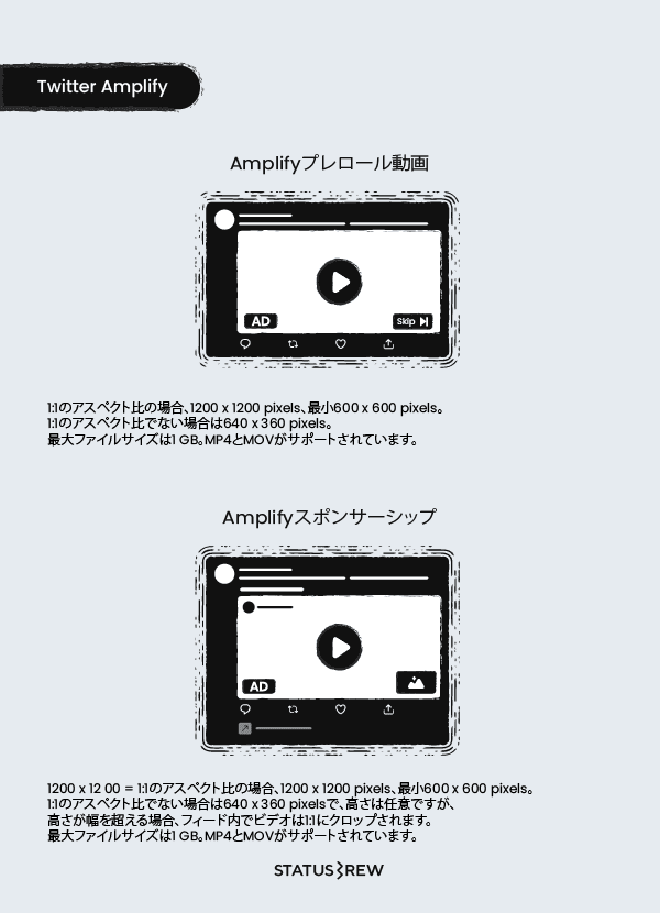 Twitterの動画広告に対する各メディアのサイズも同様です。