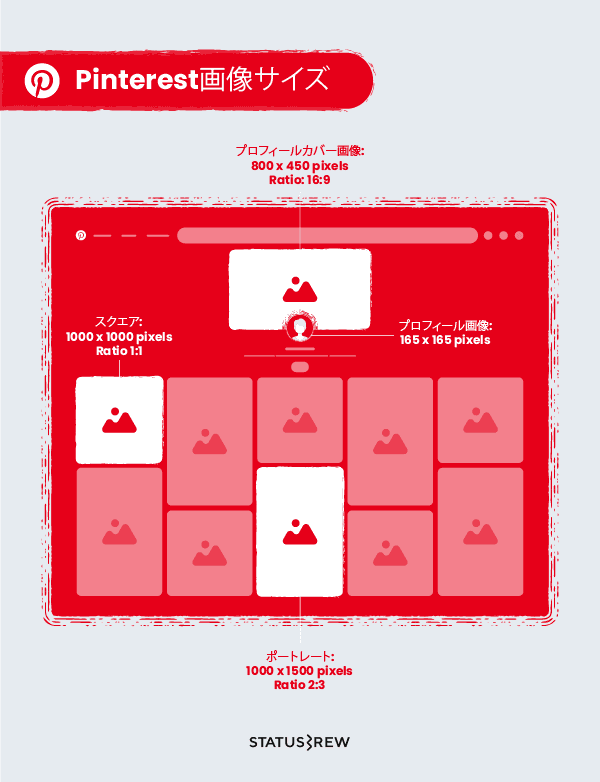 Pinterestスクエアピン: 1000 x 1000 pixels アスペクト比1:1