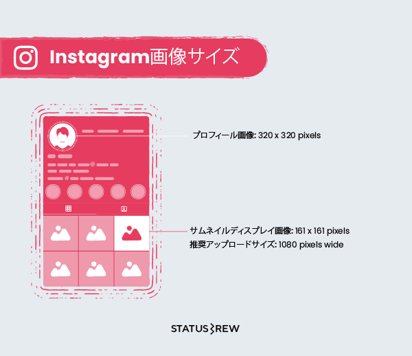 Instagramのプロフィール画像: 320 x 320 pixels