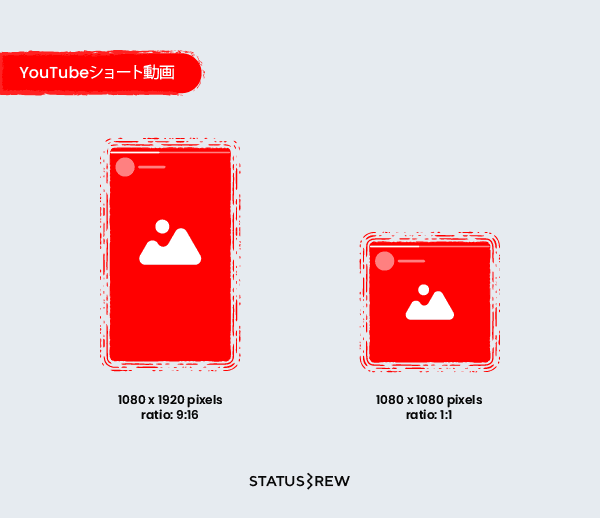 YouTubeショート動画: 1080 x 1920 pixels アスペクト比9;16