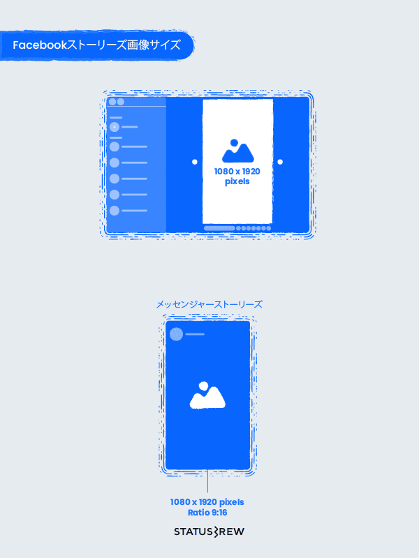 Facebookメッセンジャーストーリーズ:1080 x 1920 pixels アスペクト比9:16