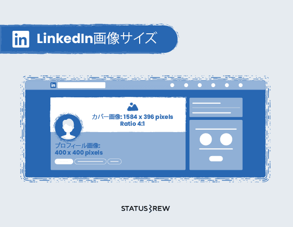 LinkedInカバー画像: 1584 x 396 pixels アスペクト比4:1
