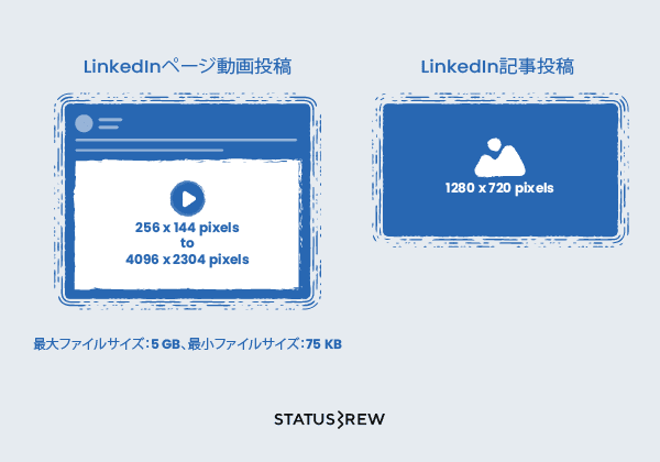 LinkedInページ動画: 256 x 144 pixels 〜 4096 x 2304 pixels