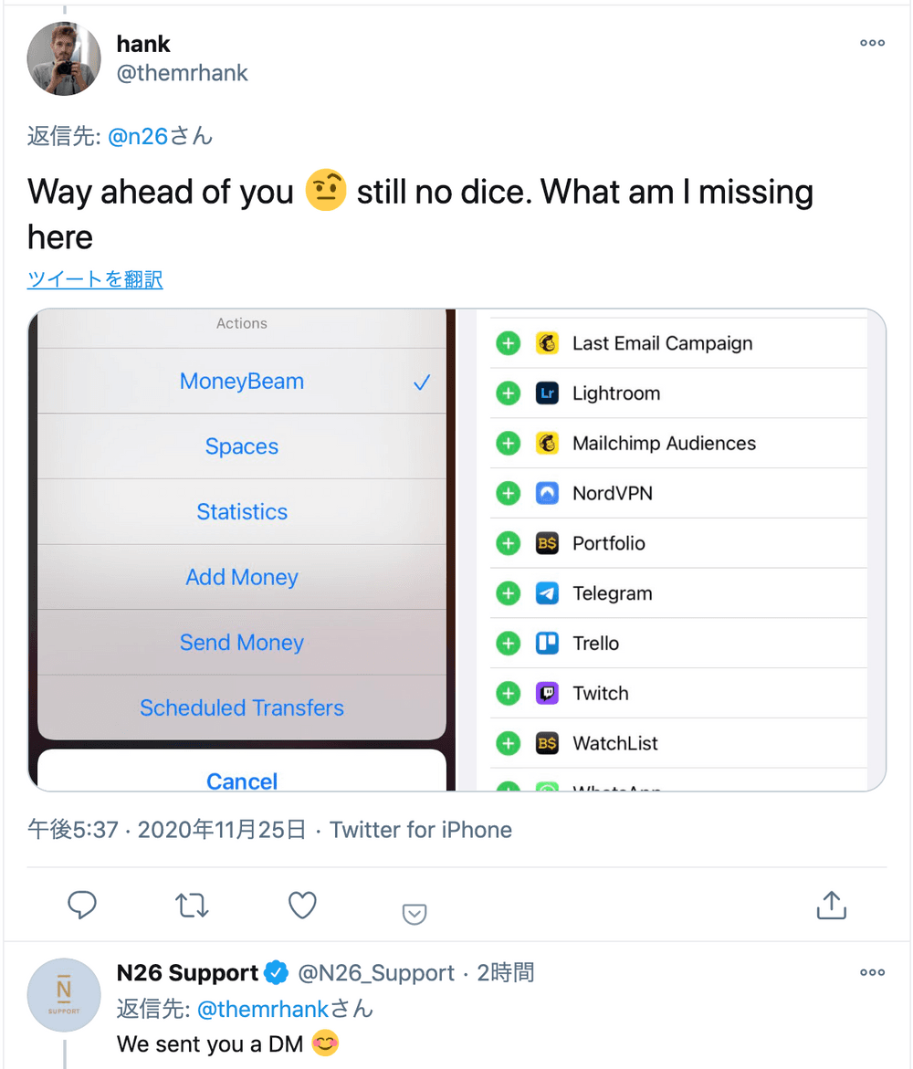 さらにカスタマーケアと申し上げましたが、Twitterを利用したカスタマーサポートはベルリン発のモバイルバンクスタートアップN26が良い成功事例です。Support専用アカウントを作成して、ユーザーからのリプライやDMに即時応答しています。ユーザーも「拡散力の高いTwitter上で名指しすれば電話やメールより早く対応してくれる」時代の雰囲気をよく読み取っています。