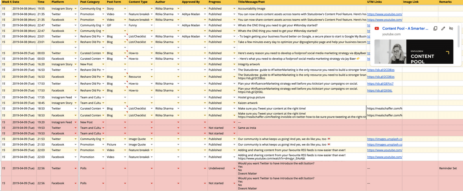 ・いつ ・誰がどんなコンテンツタスクを抱えていて ・誰の承認待ちなのか ・どんな投稿のタイミングを狙っているのか を美しいリストで俯瞰して確認できます。
