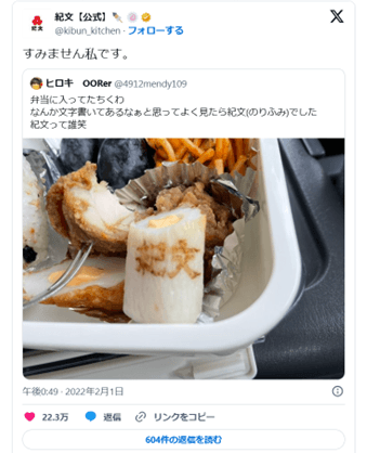はんぺんやちくわを製造する老舗の株式会社紀文食品のTwitterアカウント