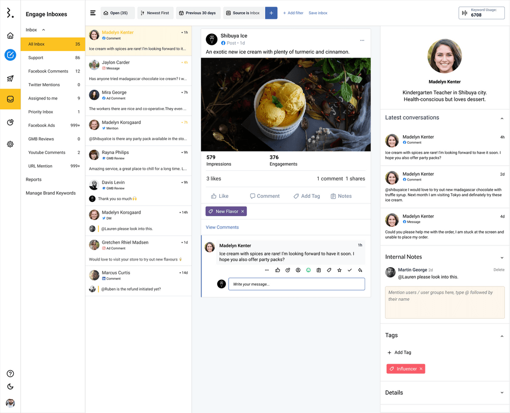 これらのことはソーシャルメディアマーケティングツールのエンゲージメント管理機能でチケット制にして対応していくことをお勧めします。