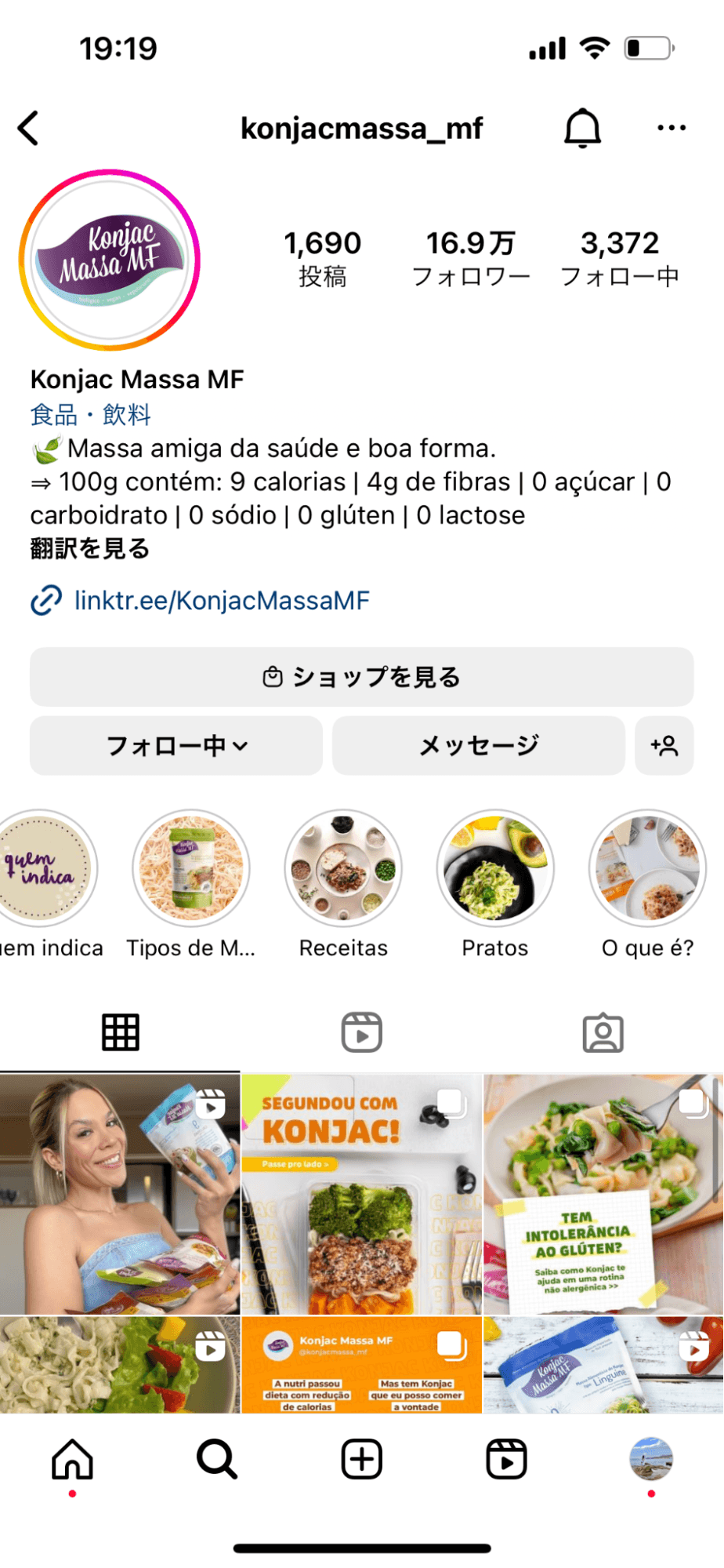今回、こんにゃくに関してポルトガル語で投稿を行うKongjacmassaというアカウントを発見しました。