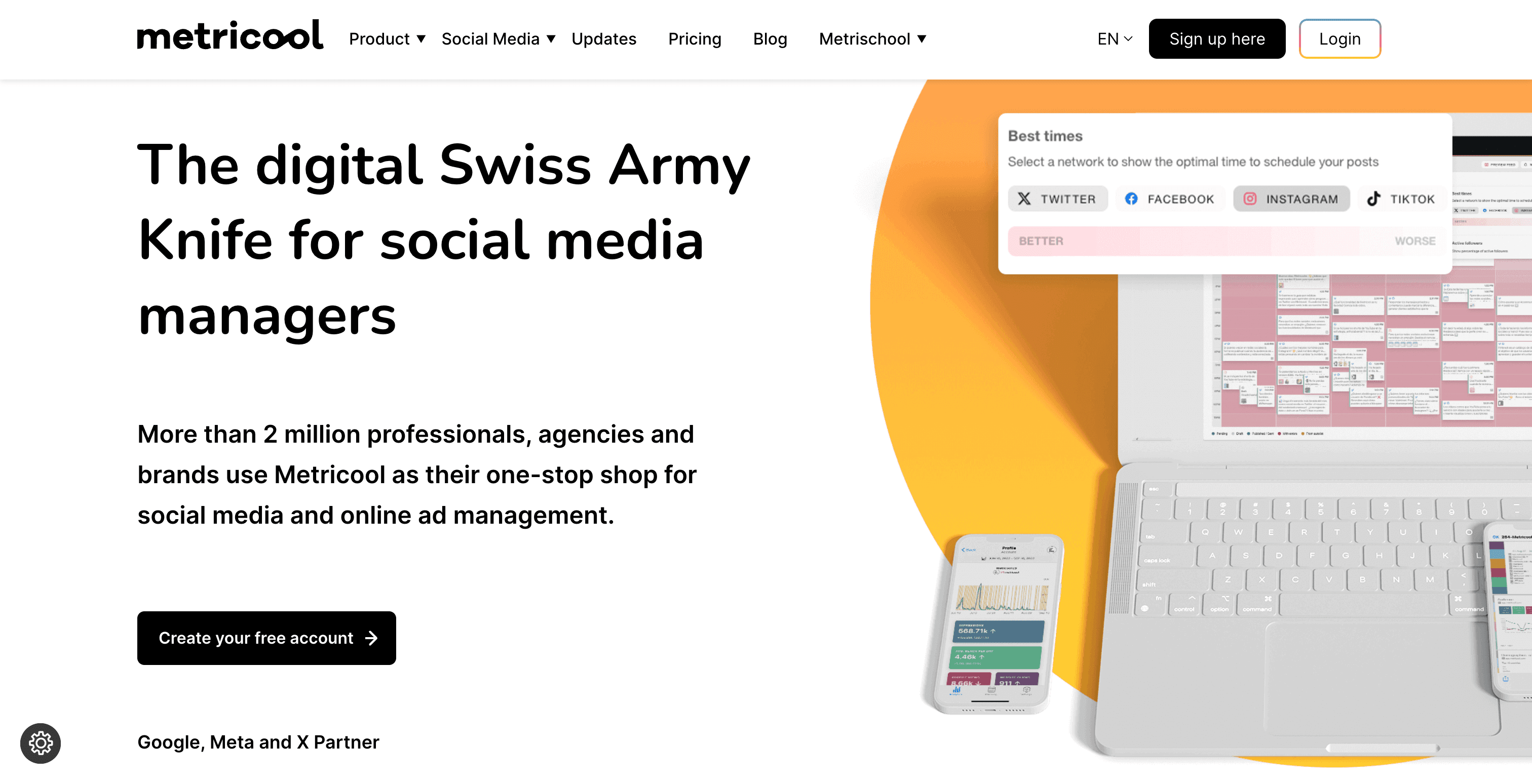 Mericoolは投稿機能だけではなく、250種類のデータソースを持つアナリティクスも充実しています。より幅広いデータ統括やクライアントワークが必要な人にお勧めです。