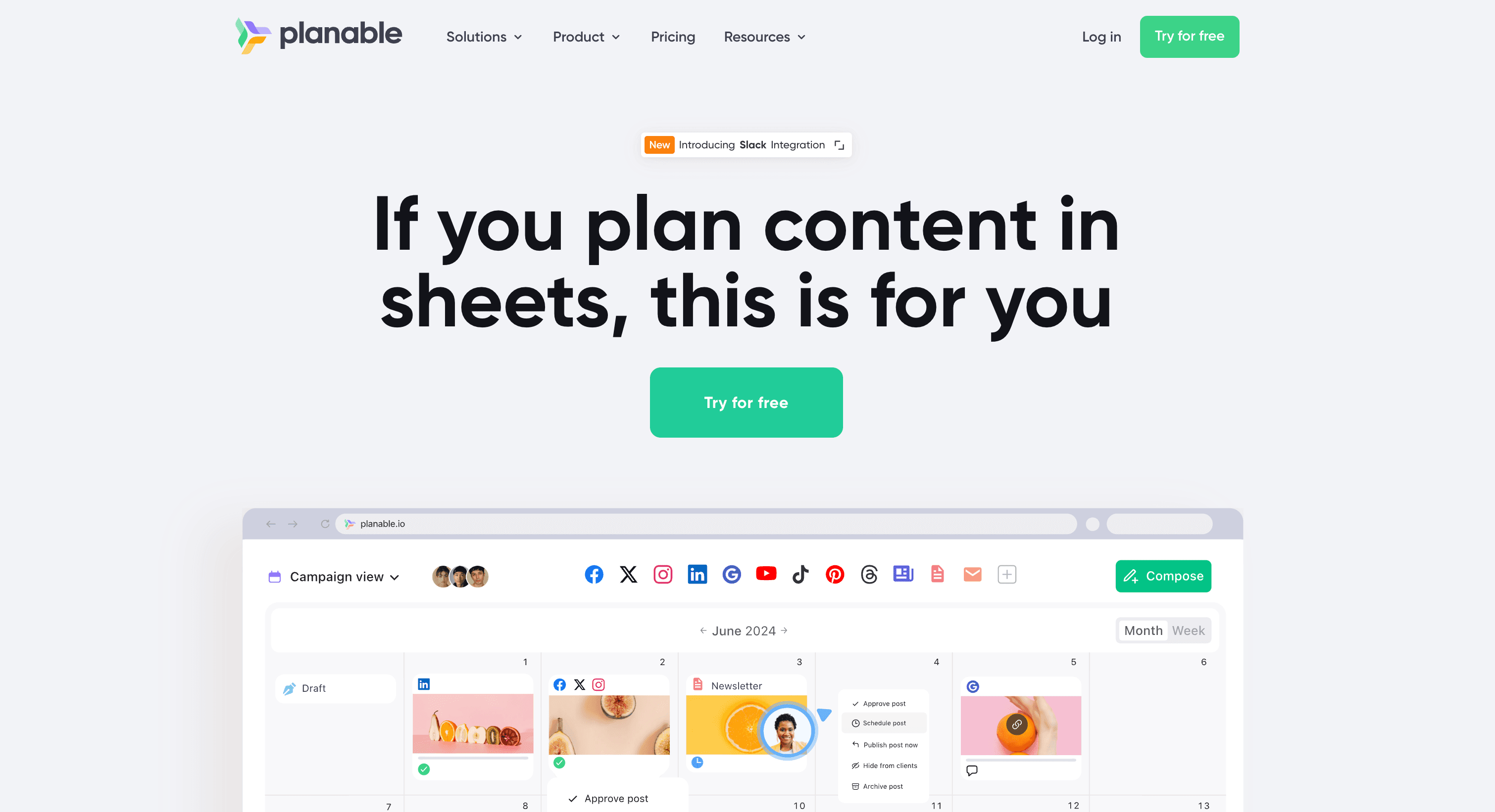 元祖の格安の個人向け運用ツールといえばLaterですが、そのNo.1対抗馬として注目を浴び、評価を得たのがこのPlanableです。Laterと同様、「予約投稿管理」だけに特化したツールだけあり、とにかく美しいソーシャルメディア専用カレンダーが魅力的です。