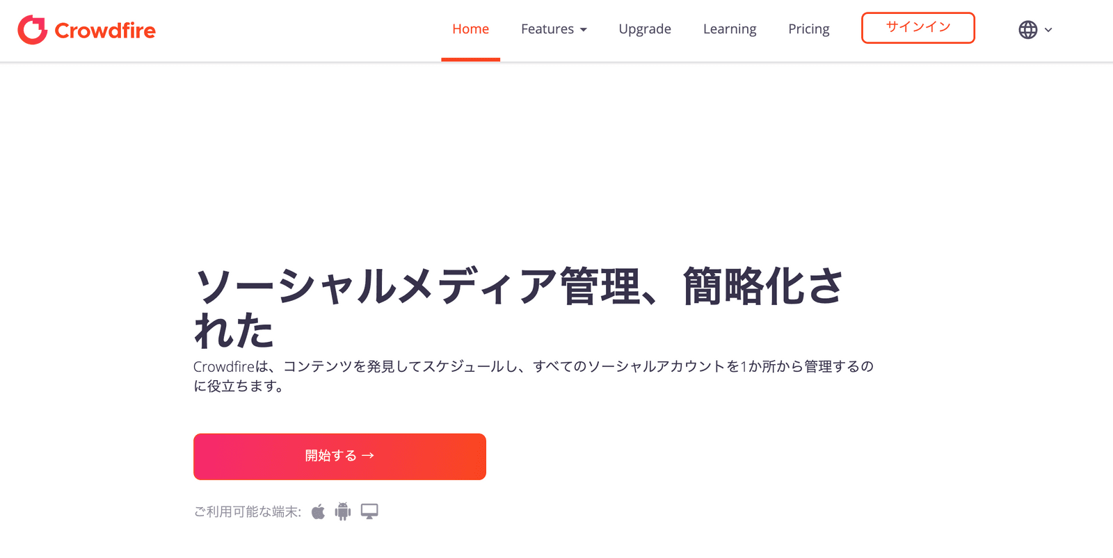 すべての基本的なソーシャルメディア管理ができます。 強みは「コンテンツのキュレーション」です。 ソーシャルだけではなく他のオンラインソースから画像やコンテンツを収集するだけではなく、リポストも可能です。 また、 Webページから 直接ブログ記事などをシェアするためのGoogle Chromeブラウザー拡張機能が便利です。