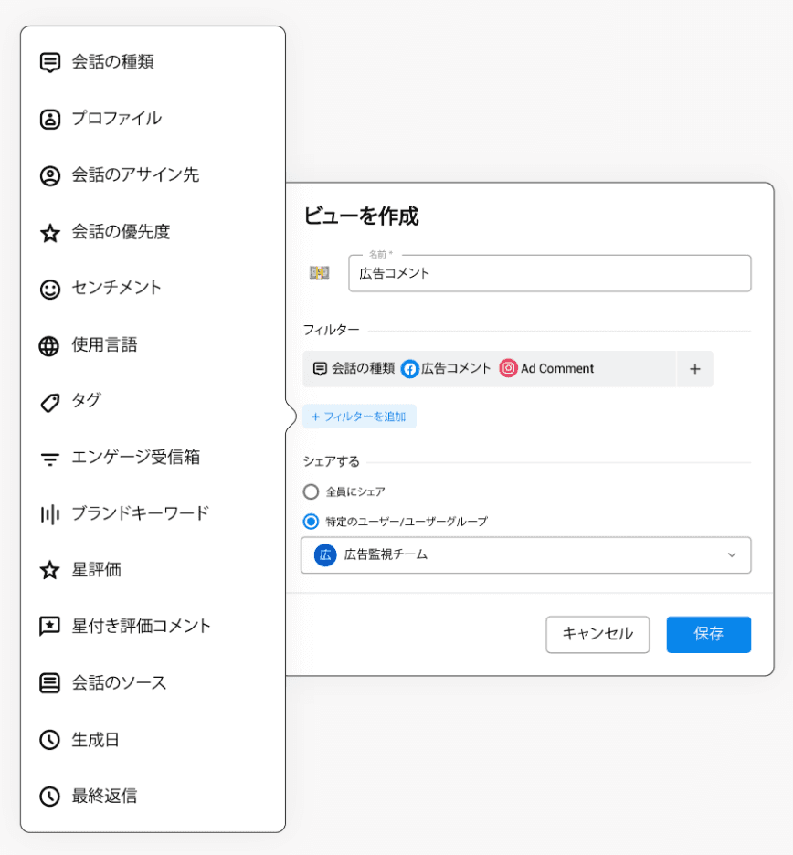 センチメント、フィルター、キーワード、その他の基準でコメントをフィルタリングする