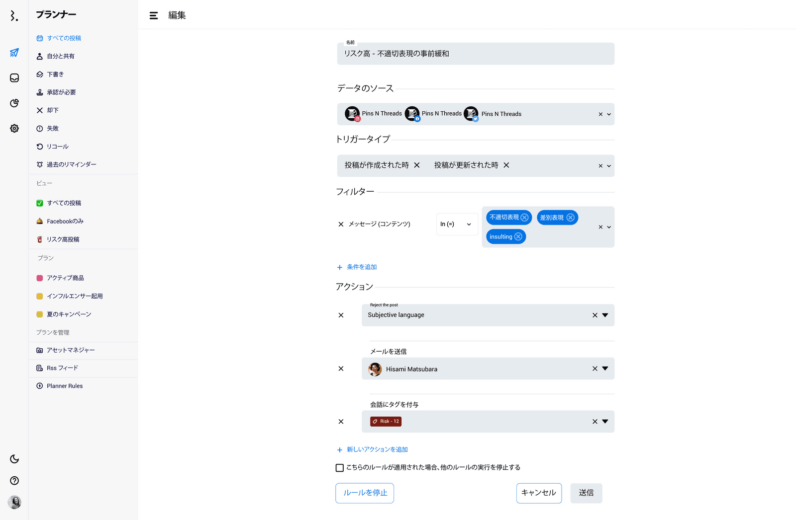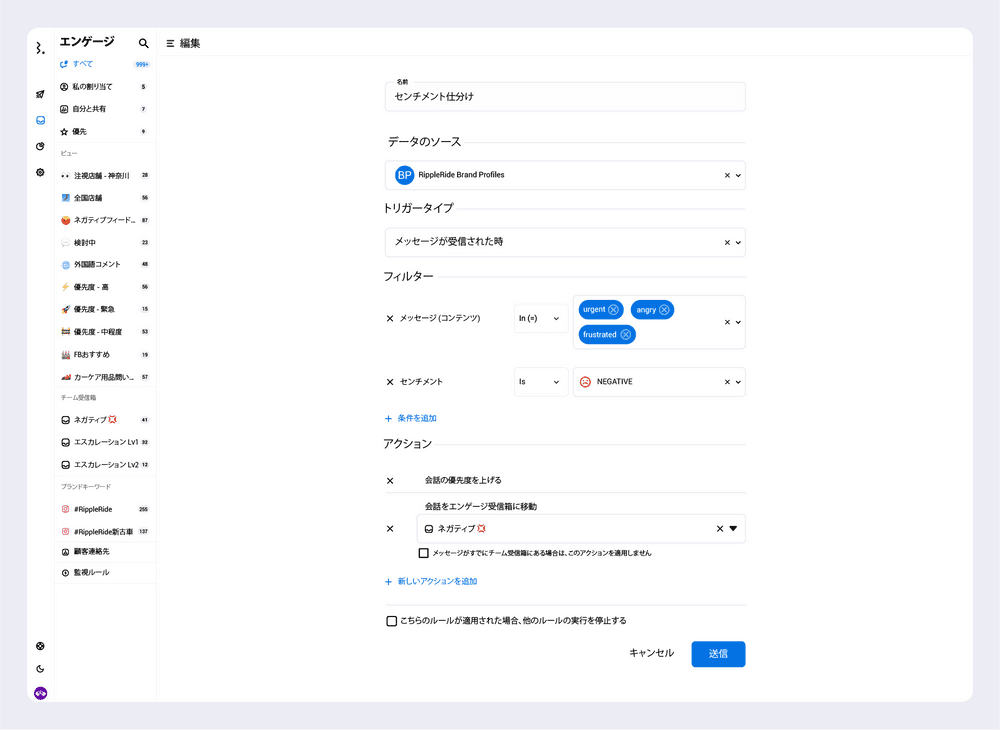 StatusbrewはこのSNS監視と対応に関する判断を自動化して、適材適所に役割をアサインするルールを搭載しています。
