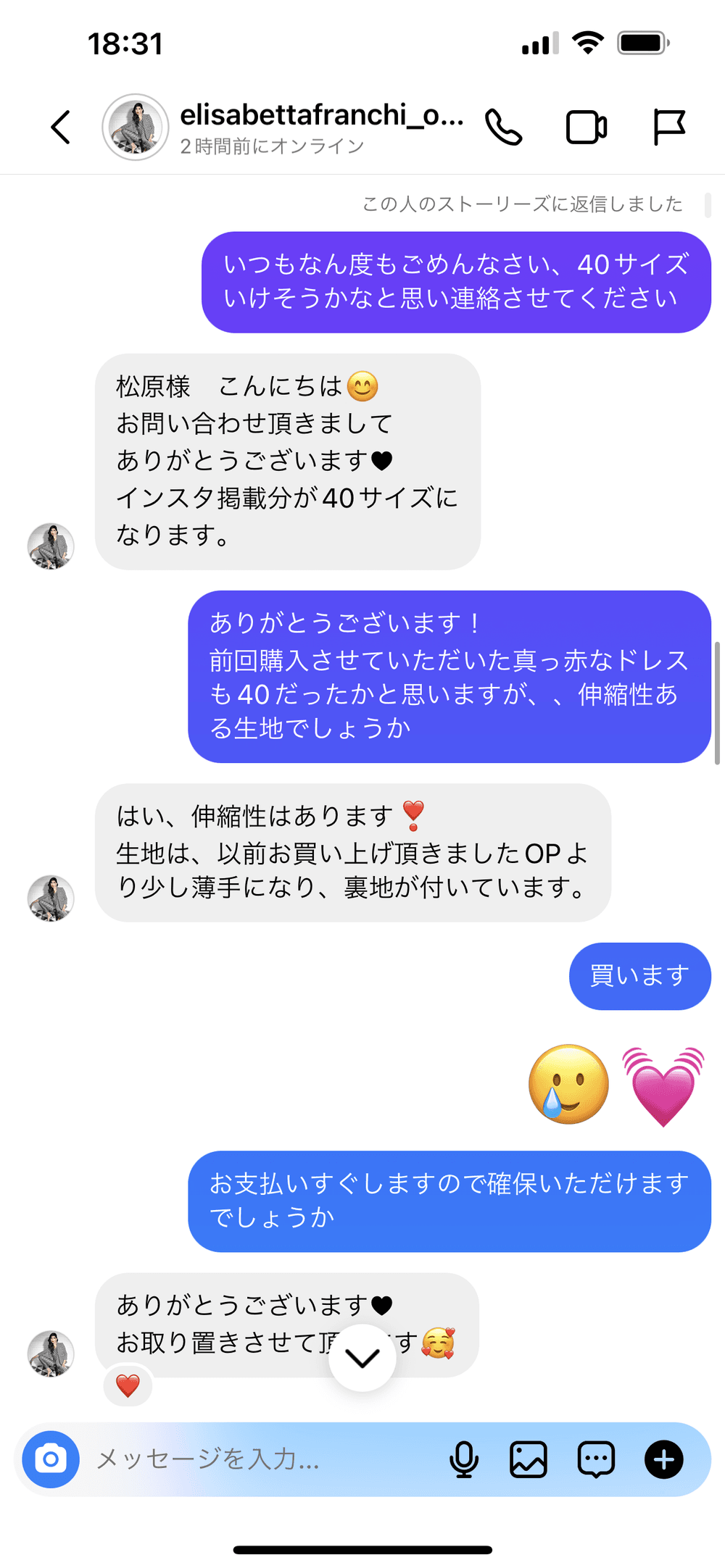 イタリアブランドElisabetta Franchi高島屋大阪店とInstagram DMでのやりとり