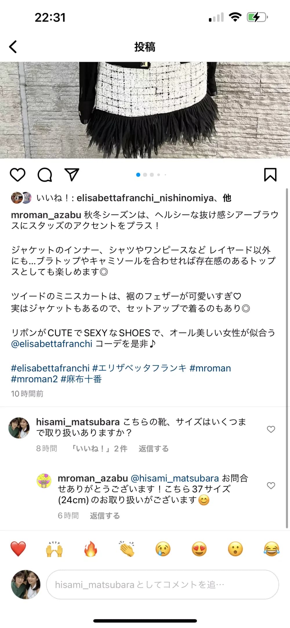 筆者提供:東京のセレクトショップの公式アカウントとのやりとり