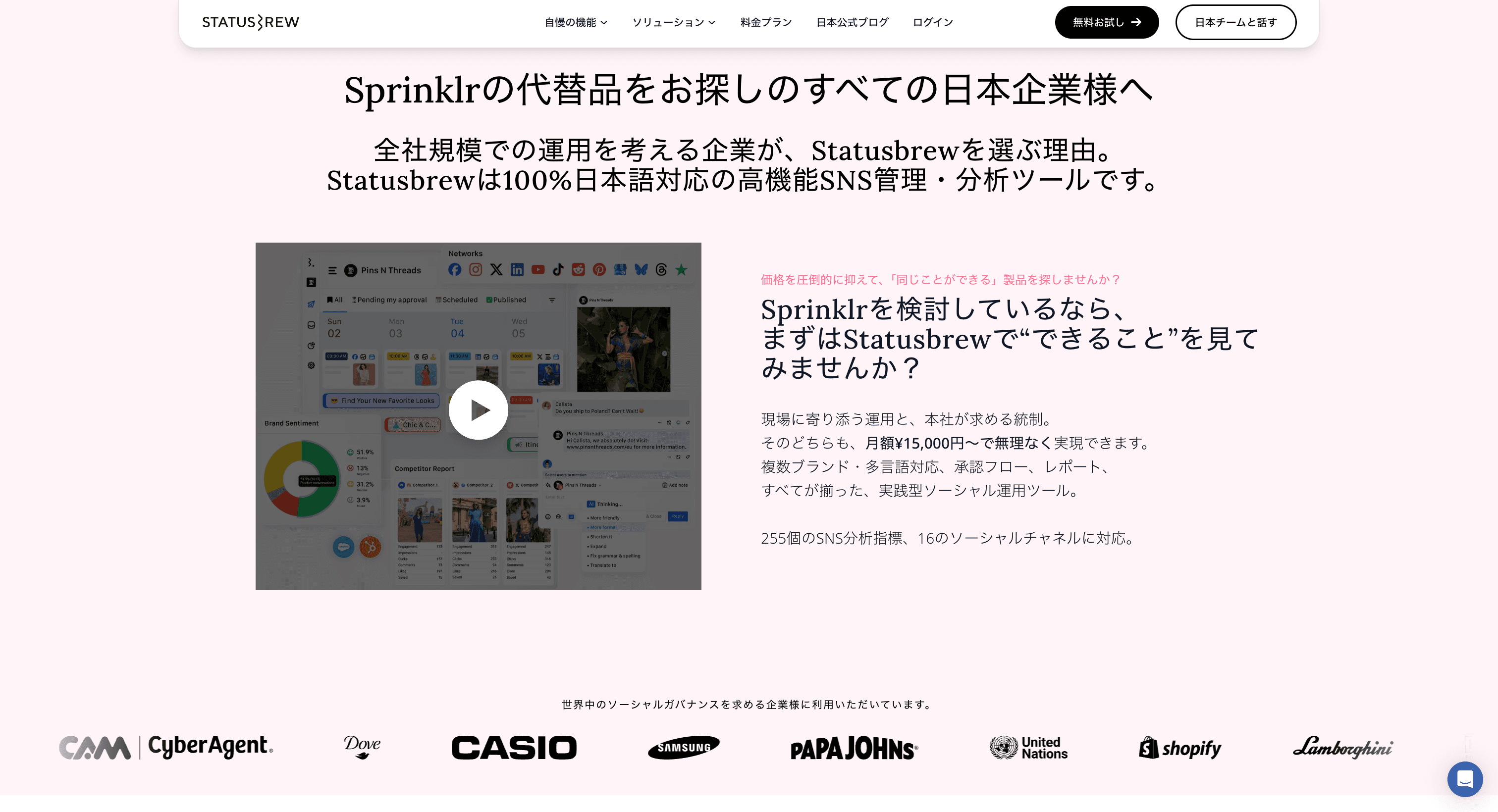 Sprinklrの規模ほどでない、または規模感はあるが予算がある、場合の選択肢としてStatusbrewを紹介します。