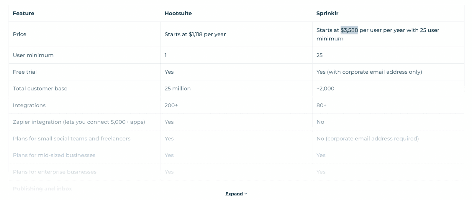 カスタマーケアとも少し重なりますが、一般的なソーシャルメディア管理ツールであれば、これらが圧倒的にSprinklrより安価に利用できます。