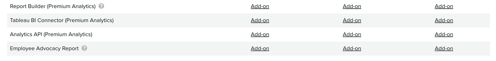 "強化"レポート(いわゆるプレミアムアナリティクス)を使用する場合、それはアドオンです。 "ソーシャルリスニング"を使用する場合、それはアドオンです。 基本的なレポーティングダッシュボードを超えた成長を遂げると、そのようなアドオンを選択する以外に選択肢はありません。