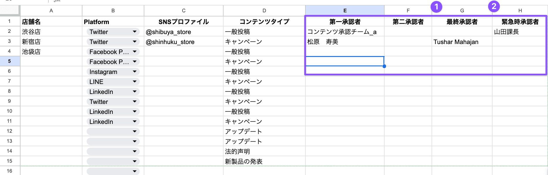シートを埋めるところから始める多店舗事業のソーシャルアカウント管理について早速紹介します。