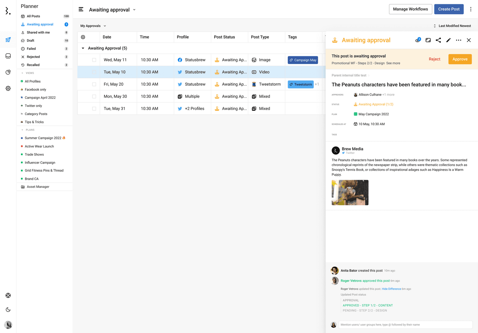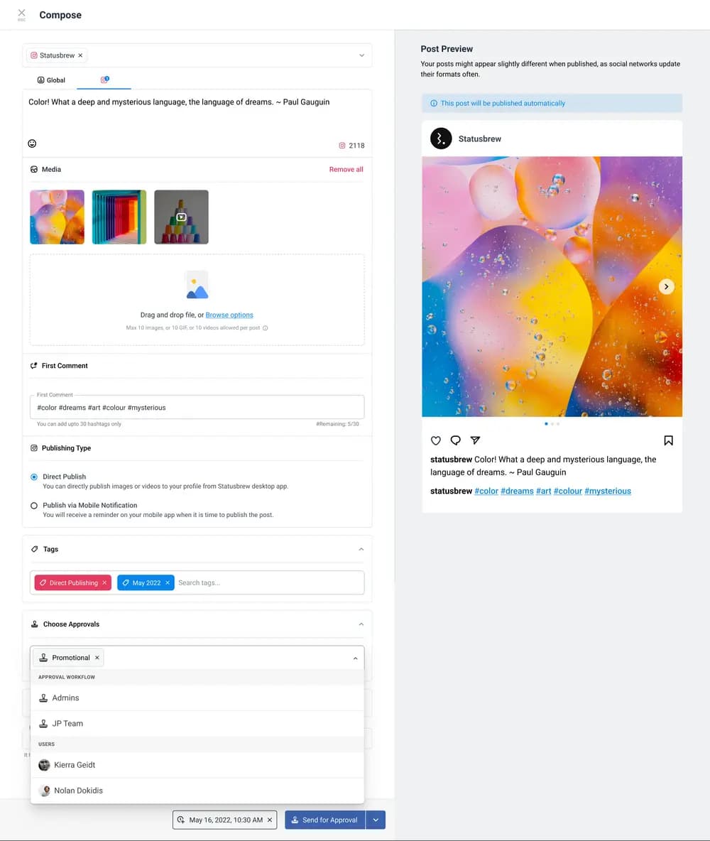 本日はStatusbrewの自慢の機能の一つであるソーシャルメディアの承認ワークフロー機能についてご紹介します。
