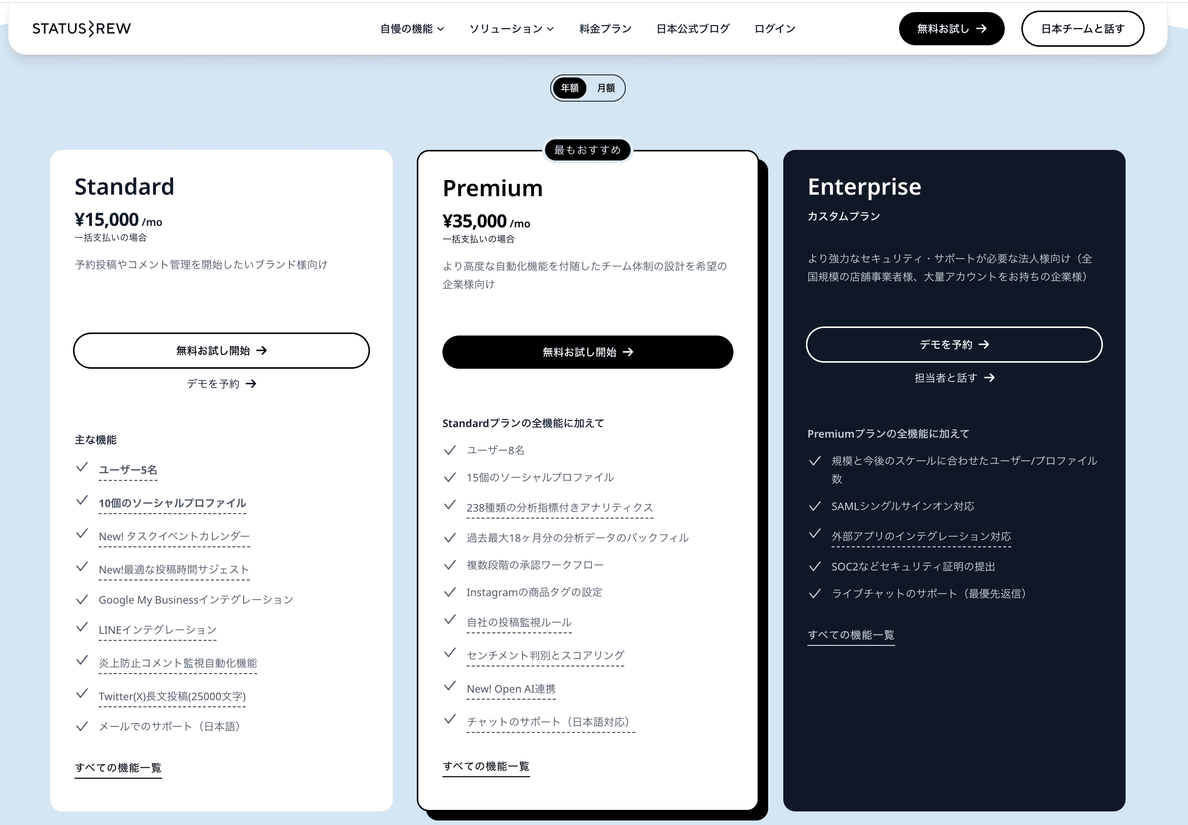Statusbrewの通常のプランはこの通りです。