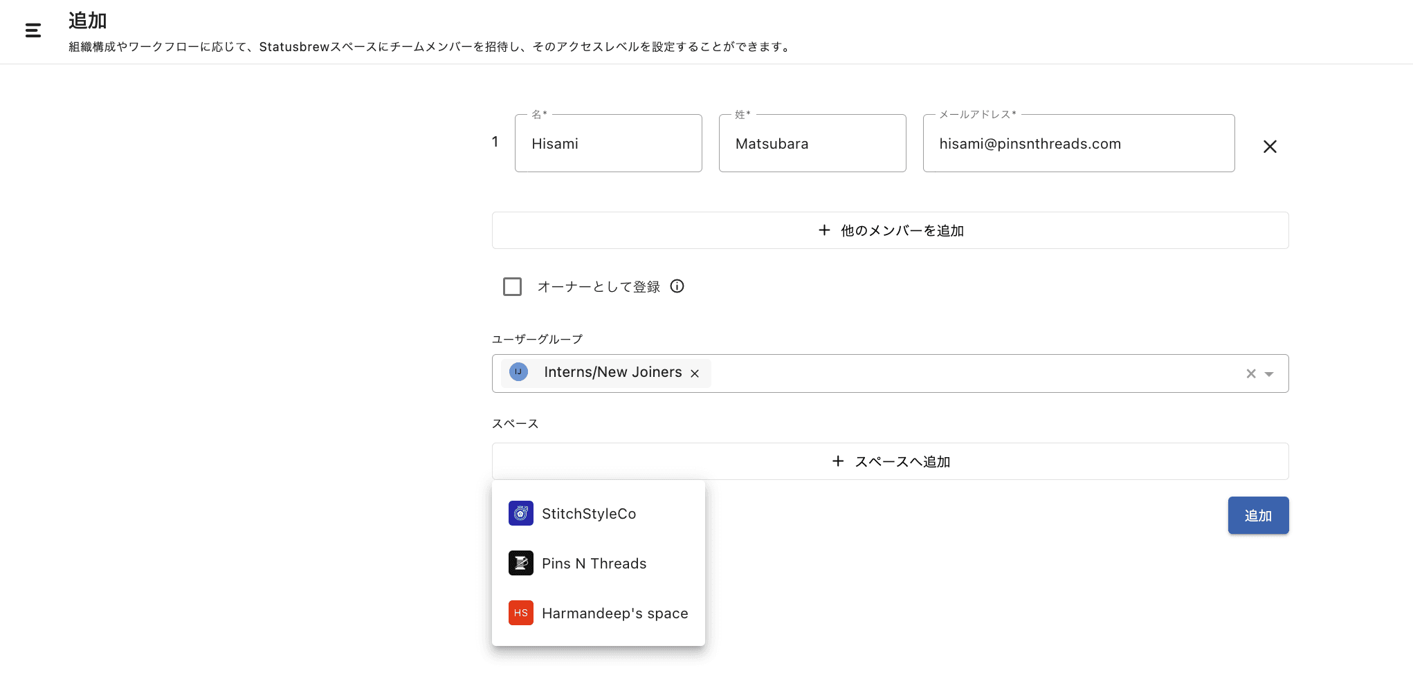追加ユーザー1名につき5,000円