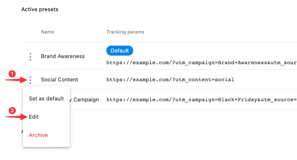 Statusbrewはソーシャルメディアマーケティングツールのため、ソーシャルを通したキャンペーンを行うマーケターのためにリンクのプリセット(UTMパラメーター管理機能)を完備しています。