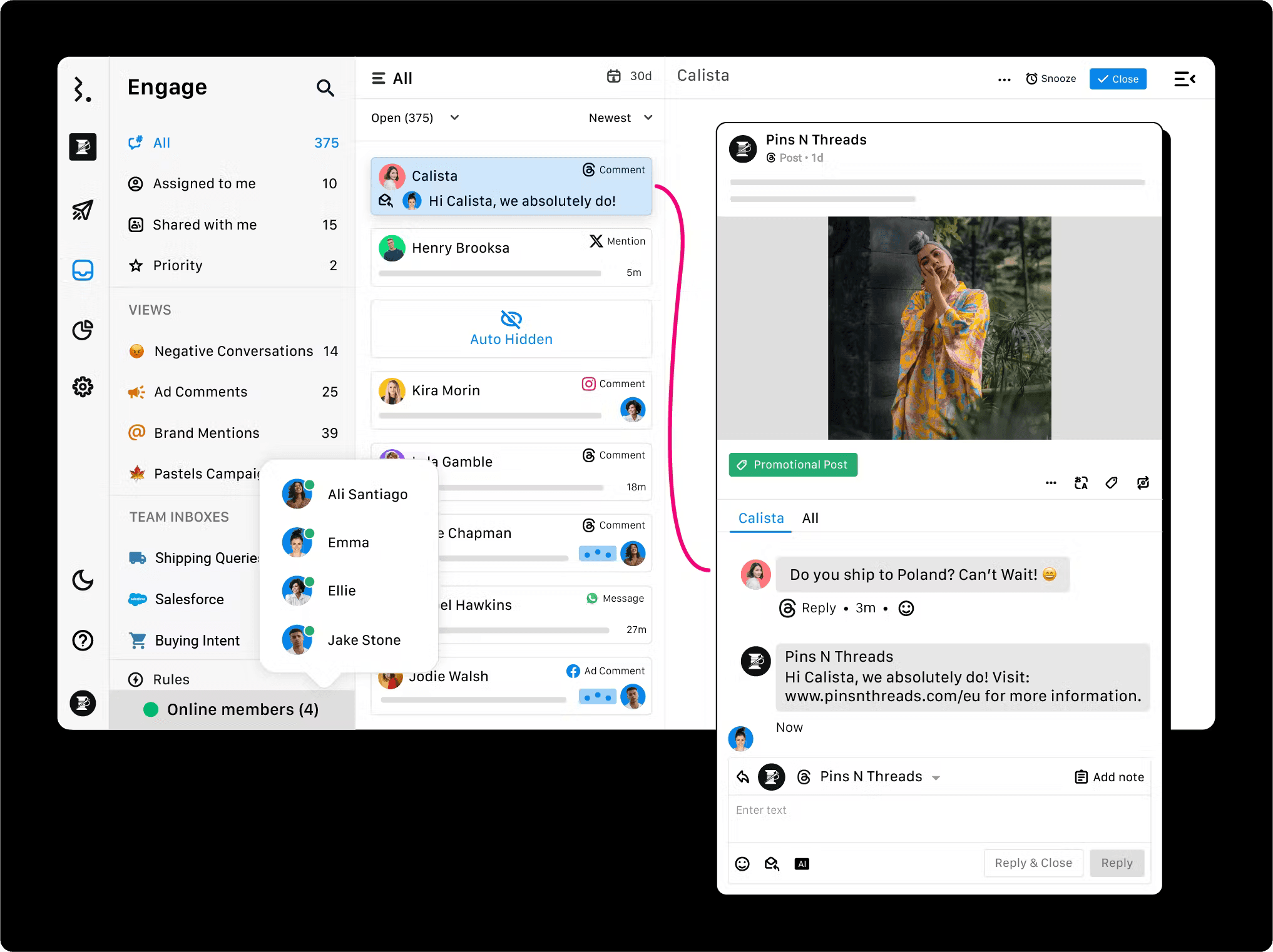 -不適切コメントやスパム、ブランド毀損の影響が高いコメントを非表示/削除できます。