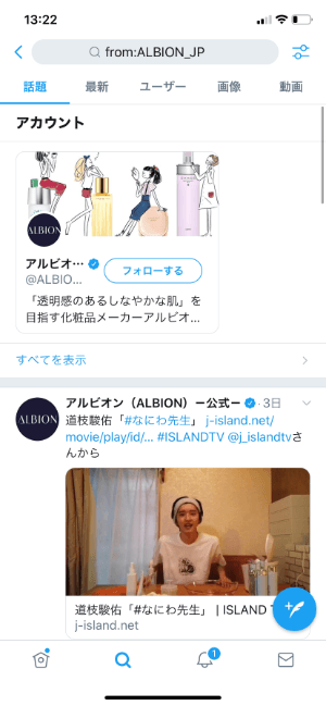 Twitterのモバイルアプリで検索した場合はこのように表示されますが