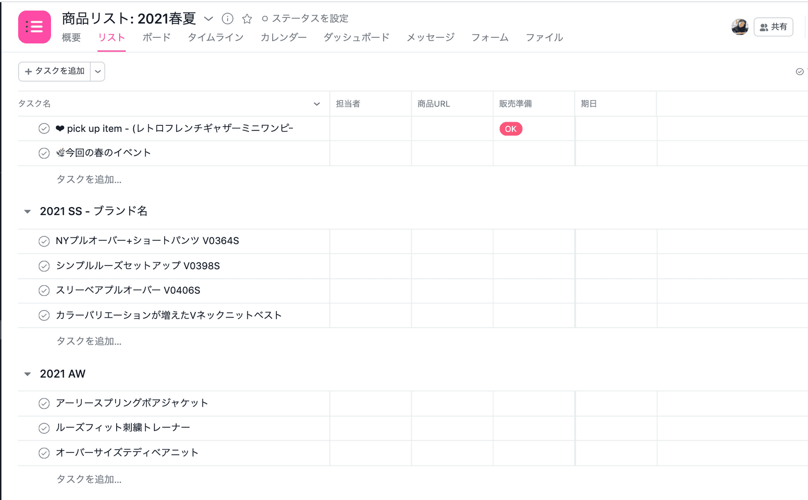 AsanaをEC商品リスト化などとして併用することで、コンテンツがタイムリーで魅力的なものになります。