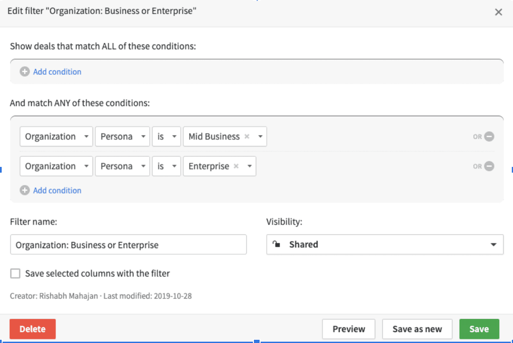 さらに複雑になりがちなターゲットごとのフィルタリングも可能です。顧客へアプローチしてからの経過日数や、あらかじめ設定しておいたアクティビティ(フォローアップメール/電話)のリマインダーとしての機能も果たしてくれます。