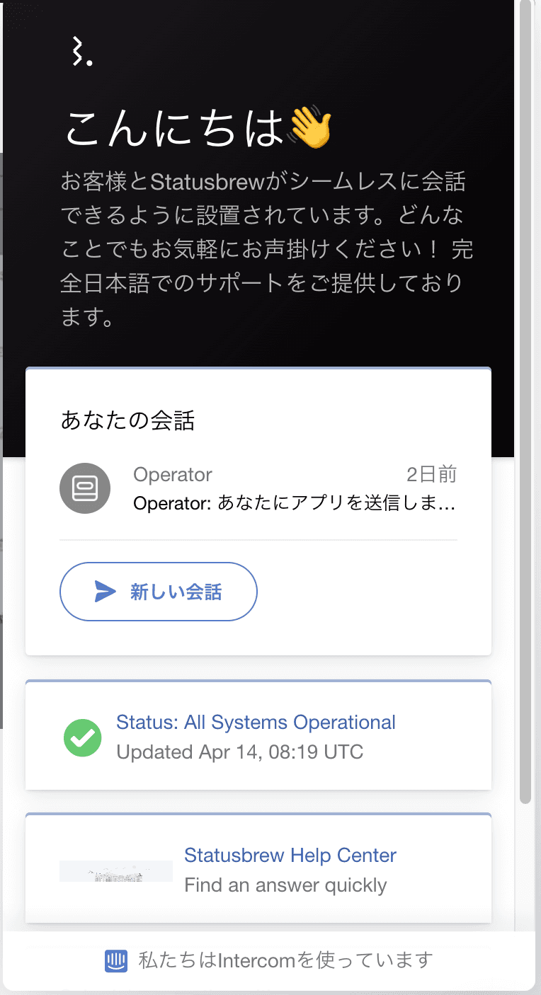 Statusbrewのウェブサイトを訪問してくださった方、アプリのユーザー様は上記のライブチャットウィンドウをご覧いただいたことがあると思います。