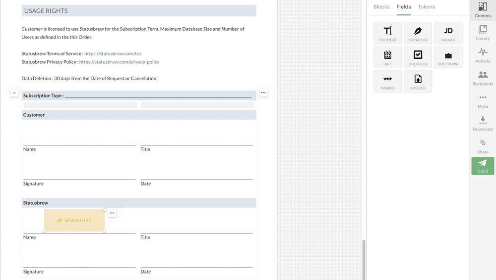 印鑑制度の有り無しが騒がれていますが、Statusbrewからお客様へ発行する契約書はこのDocuSignという電子署名を採用しています!