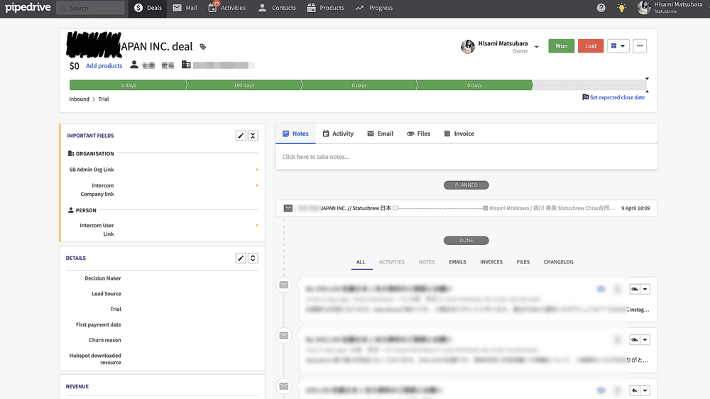 Pipedriveは元セールスマンがセールス担当者のために作った新型CRMプラットフォームです。実際に私を含めStatusbrewのセールスチームがtoBのお客様へのセールスプロセス管理に利用しています。