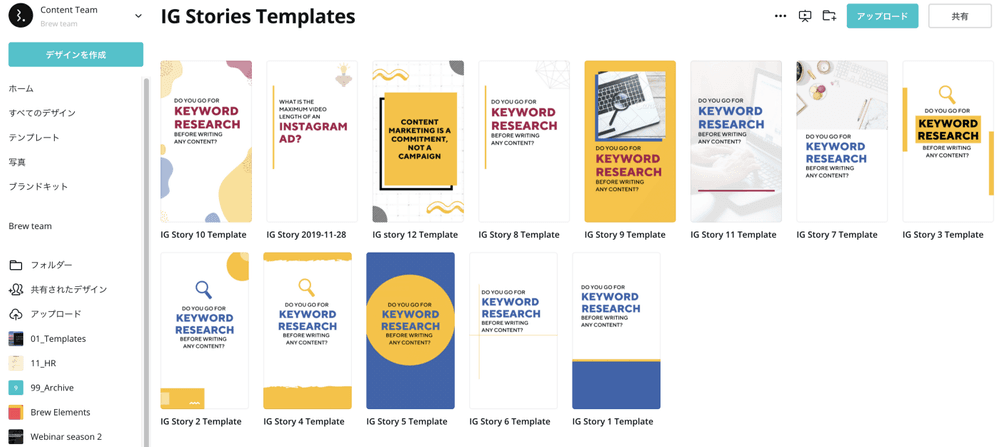 Statusbrewの中でもデザインツールといえばCanvaを使えという共通認識が存在しています。特に私たちのようなIT企業はマーケティングコンテンツ作成のためにインフォグラフィック(データや情報などをわかりやすく視覚的に表現すること)のテンプレートをよく使います。