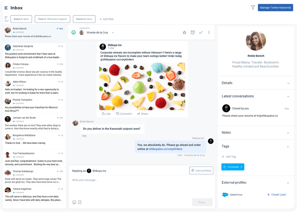 炎上を防ぎ、ソーシャル上で顧客との関係性を育てるエンゲージメント管理機能は世界中のお客様にご利用いただいています。